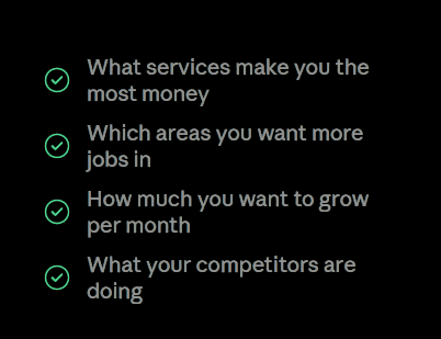 We find out who your best customers are, what area you cover, and what's holding back your growth right now.