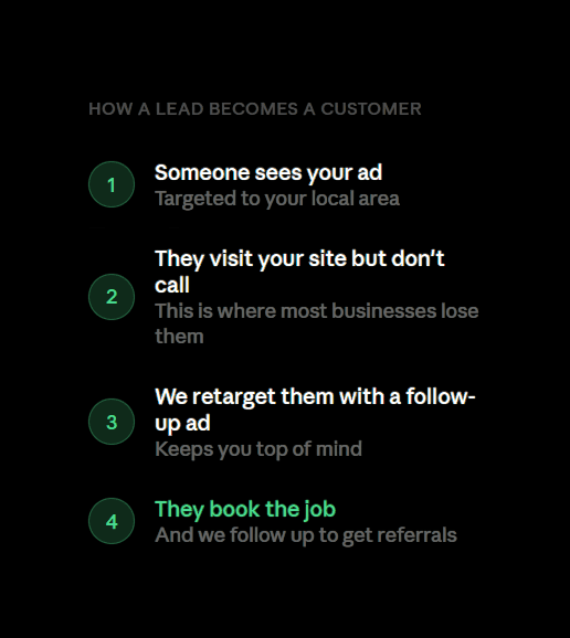 We run targeted ads on Meta aimed at people in your area who are actively looking for your service right now.